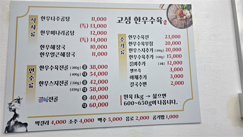 메뉴판은 한우전골, 수육전골, 한우나주곰탕, 한우미나리곰탕, 열큰해장국까지 단출하지만 자신 있는 항목만 딱 올린 구성이다.