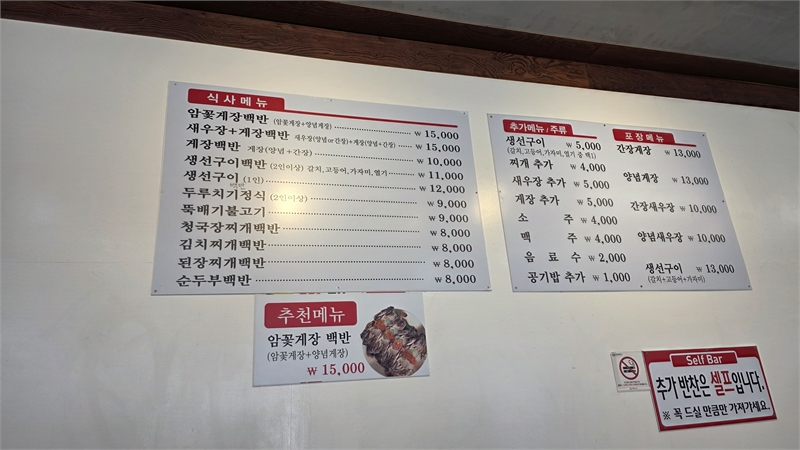 추천 메뉴: 암꽃게장백반, 생선구이백반